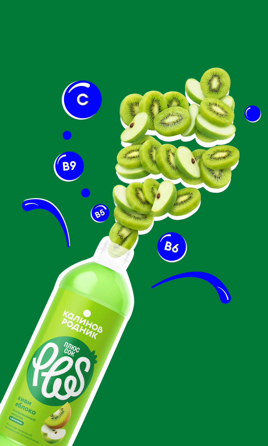 вода «калинов родник плюс сок» киви-яблоко, 1 л, газированная