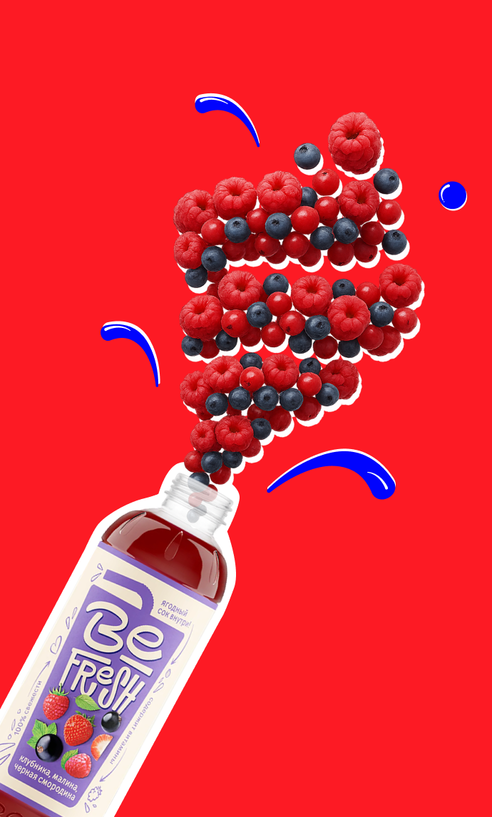 BeFresh с соком и витаминами «Клубника, малина, черная смородина» 0,45 л, негазированный